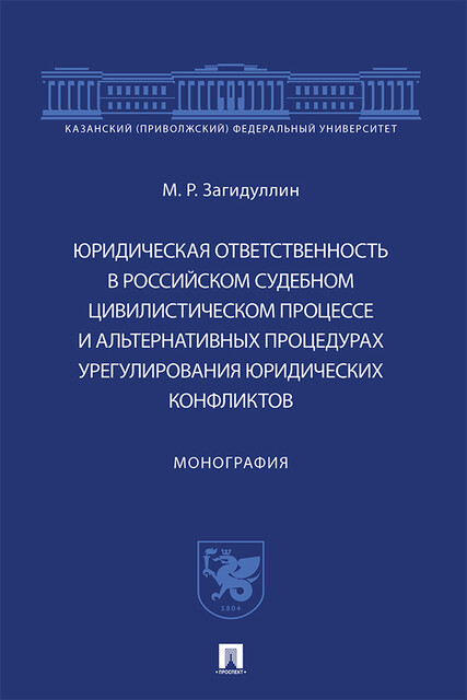 Юридическая ответственность в российском судебном цивилистическом процессе и альтернативных процедурах урегулирования юридических конфликтов. Монограф