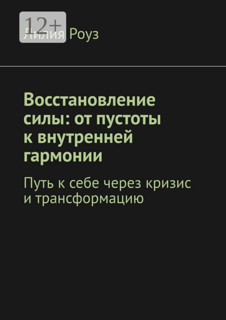 «Восстановление силы: от пустоты к внутренней гармонии» — книга о процессе личной трансформации, который начинается в моменты кризисов и потерь. Автор делится опытом преодоления боли, восстановления самоценности и обретения внутренней силы. Книга предлагает практические советы для женщин, стремящихся вернуть уверенность, научиться жить в гармонии с собой и принимать свою уникальность, несмотря на внешние обстоятельства и внутренние сомнения.