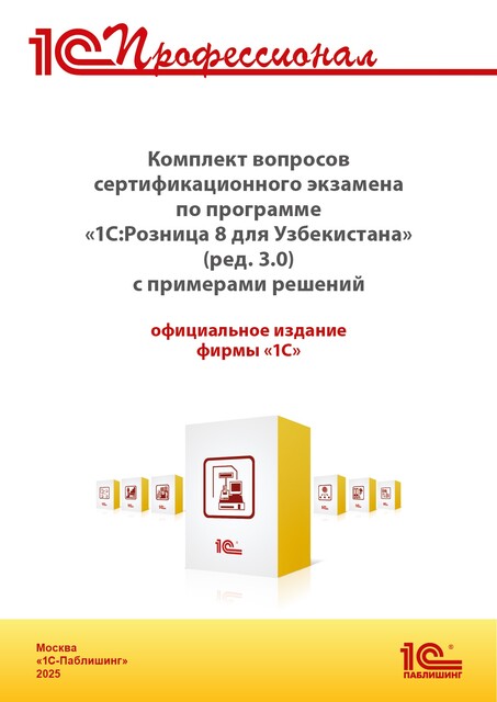 Комплект вопросов сертификационного экзамена «1С:Профессионал» по программе «1С:Розница 8 для Узбекистана» (редакция 3.0) с примерами решений, практическое пособие. Август 2025