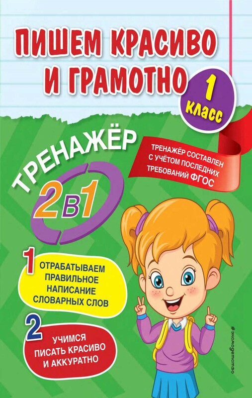 Основная цель уроков русского языка — научить детей писать грамотно. Однако не менее важно выработать аккуратный, красивый почерк. Неправильное или нечёткое написание ребёнком букв и их соединений приводит к проблемам с орфографией. В этом тренажёре представлены универсальные задания для первоклассников, соответствующие требованиям ФГОС начального общего образования. Выполняя упражнения, ученик повторит словарные слова и закрепит навык правильного их написания. При этом ему предлагается обвести каждое слово, написанное прописью. Это будет способствовать формированию аккуратного и разборчивого почерка. Выполняя разнообразные задания, первокласснику придётся разгадывать несложные ребусы и другие головоломки, исправлять умышленно сделанные ошибки. Игровой элемент повысит интерес ученика к работе с данным тренажёром. Пособие может быть использовано как дома для совместной работы младших школьников с родителями, так и в школе в качестве дополнительного материала на уроках русского языка.